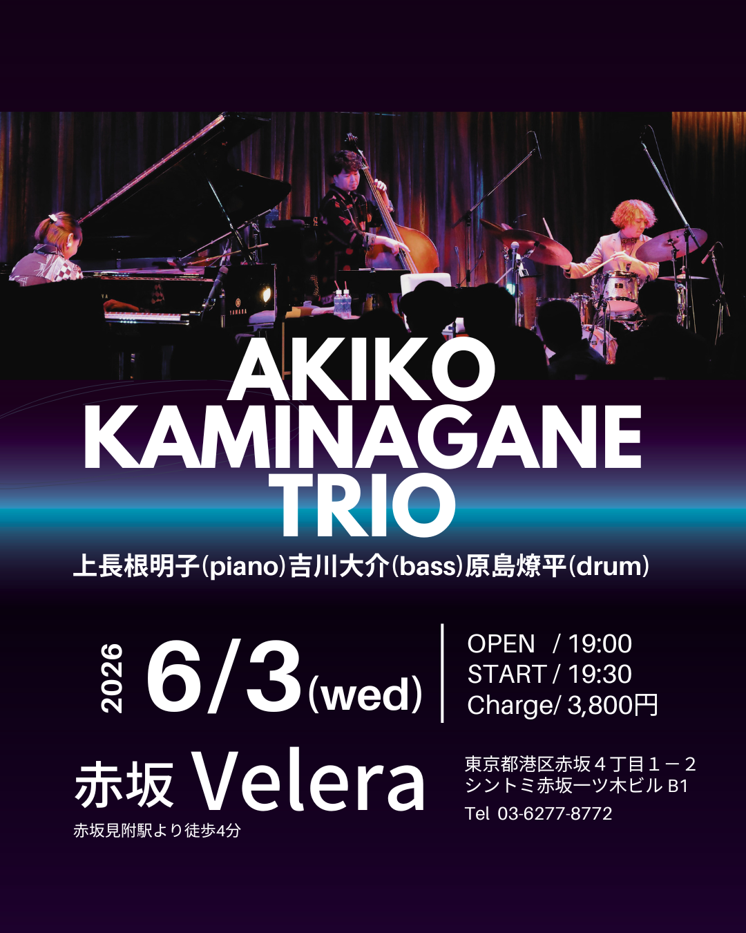 ⭐️【Akiko Kaminagane Trio】吉川大介(bass) 原島燎平(drums)